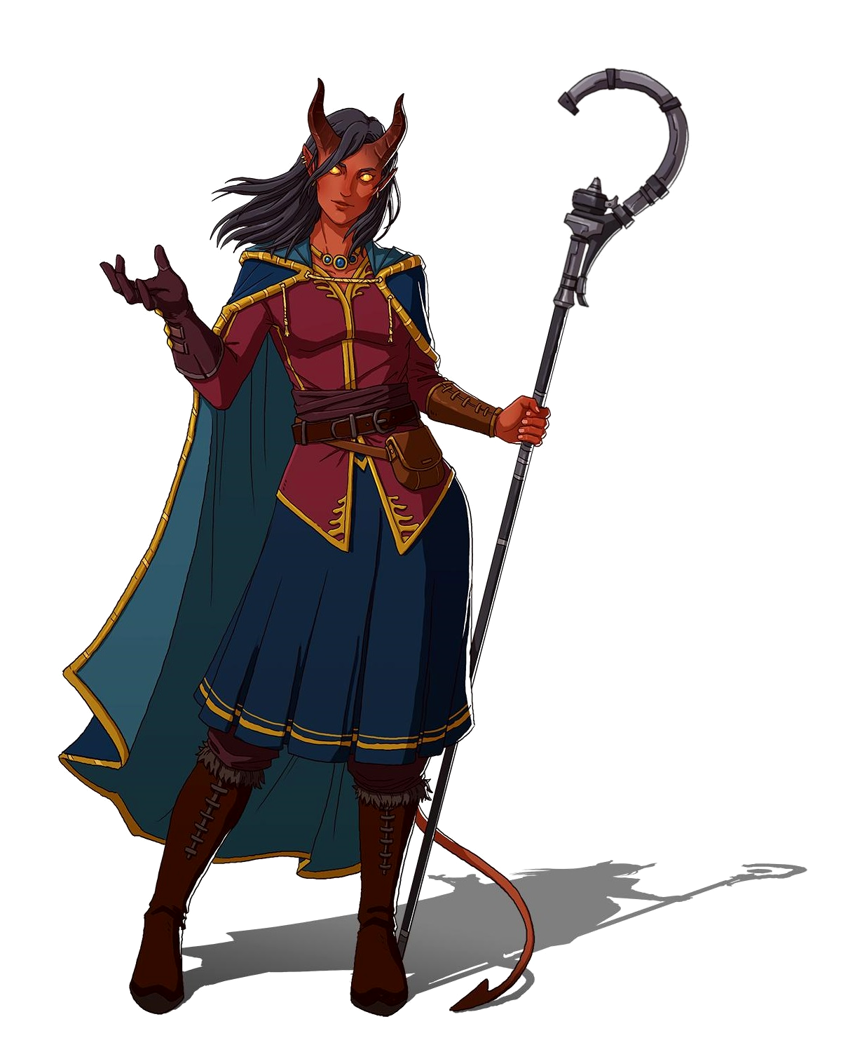 Legado infernal: Podes usar o cantrip thaumaturgy. A nível 3 podes usar o feitiço hellish rebuke uma vez por dia como feitiço de nível 2. A nível 5 podes usar o feitiço darkness uma vez por dia. Usas carismas para usares a magia.